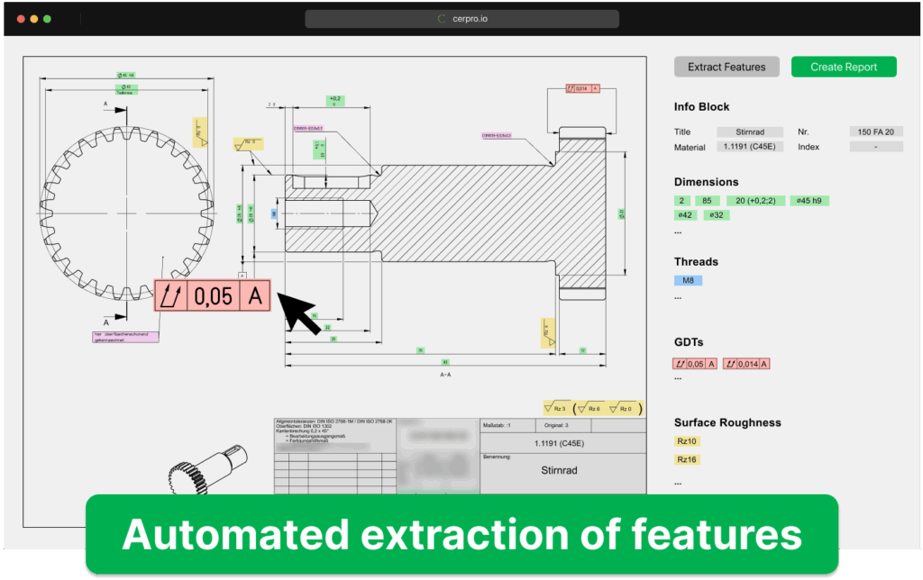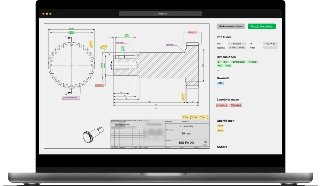 CERPRO significantly simplifies the administrative processes in manufacturing companies, especially when analyzing technical drawings and creating flexible inspection reports. This allows manufacturing companies to concentrate on their core competence – production – while drastically reducing the time and effort spent on administrative tasks.